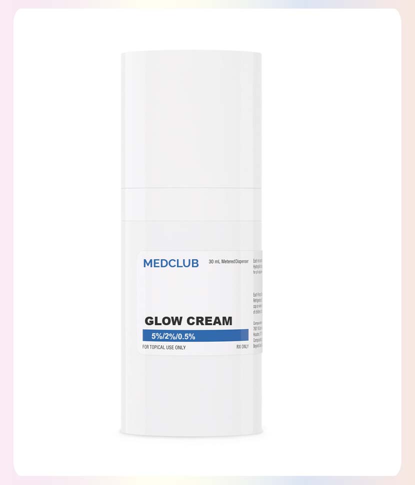 The ritual begins with Glow, a powerhouse formula designed to hydrate and create a radiant appearance. This multipurpose cream uses a potent blend of 5% Kojic Acid, 2% Ascorbic Acid, and 0.5% Hyaluronic Acid to aggressively target dark spots and dehydration. By inhibiting pigment production and flooding the skin with moisture, it creates a luminous, even-toned canvas for youthful radiance.