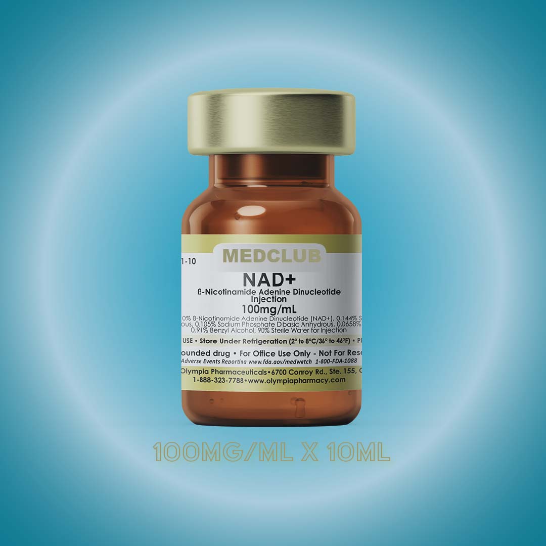 NAD+ stands for nicotinamide adenine dinucleotide. It is a coenzyme found in all living cells and has even been called an anti-aging molecule because of the many important roles it plays in promoting ahealthy and prolonged life. MedClub’s NAD+ Therapy Shot Kit includes all of the supplies needed for daily injections, along with helpful training information, and 1 on 1 clinical support. Medical Waiver is required during checkout.
